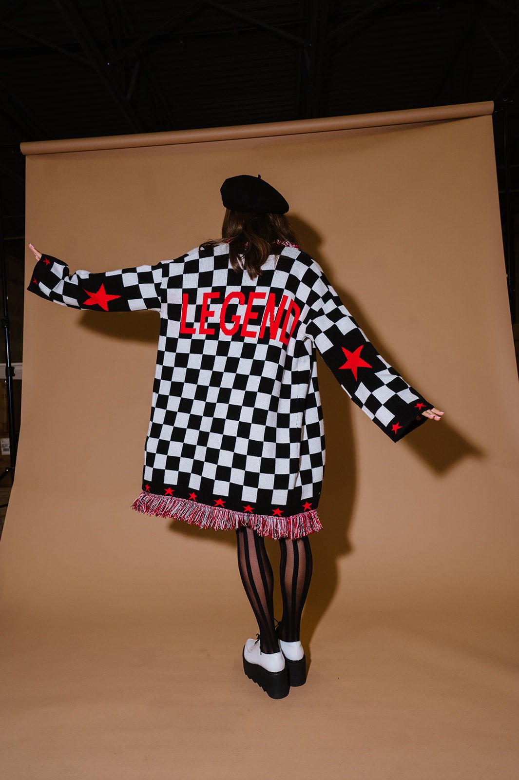 Legend Luxe Fringe Checkered Cardigan