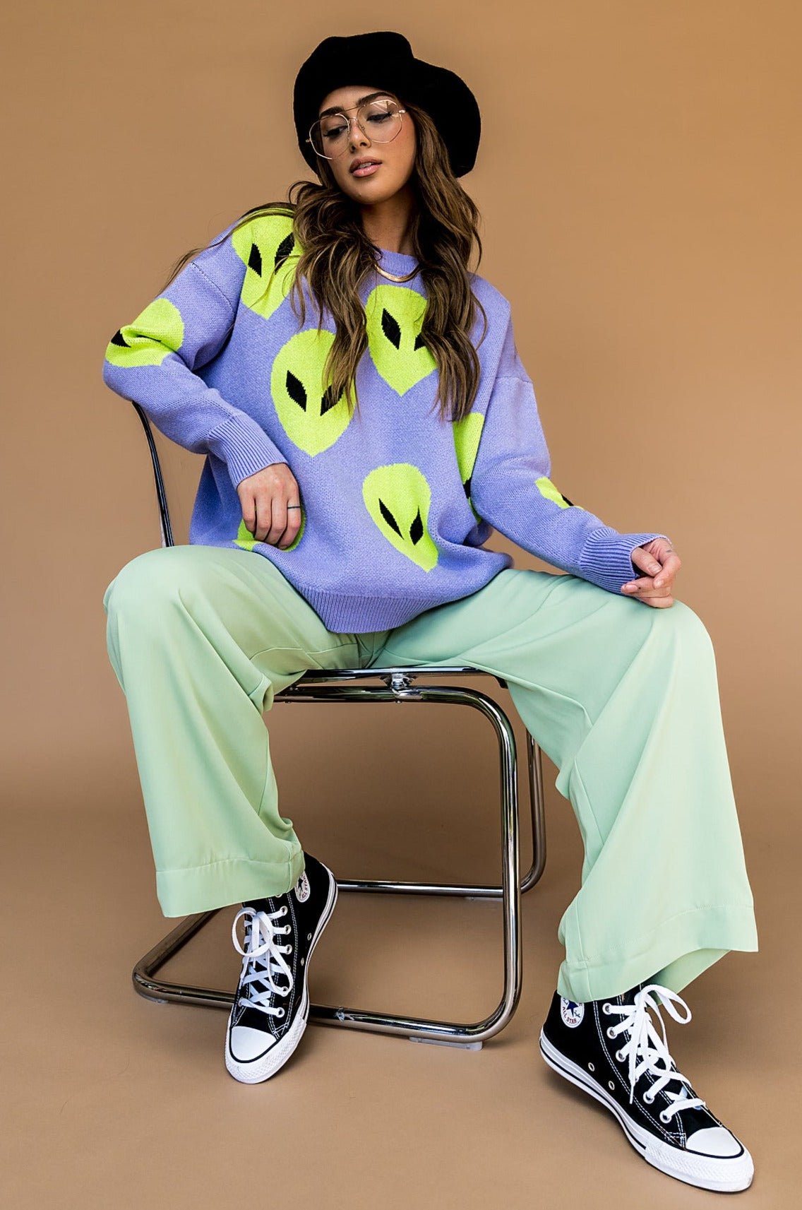 Too Cool For You Oversized Alien Knit in Lavender