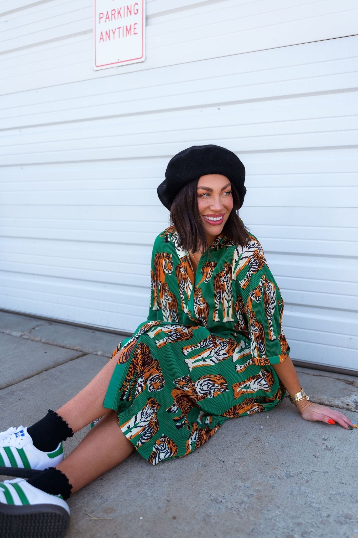 So Far So Good Oversized Plissé Dress in Tiger Tales