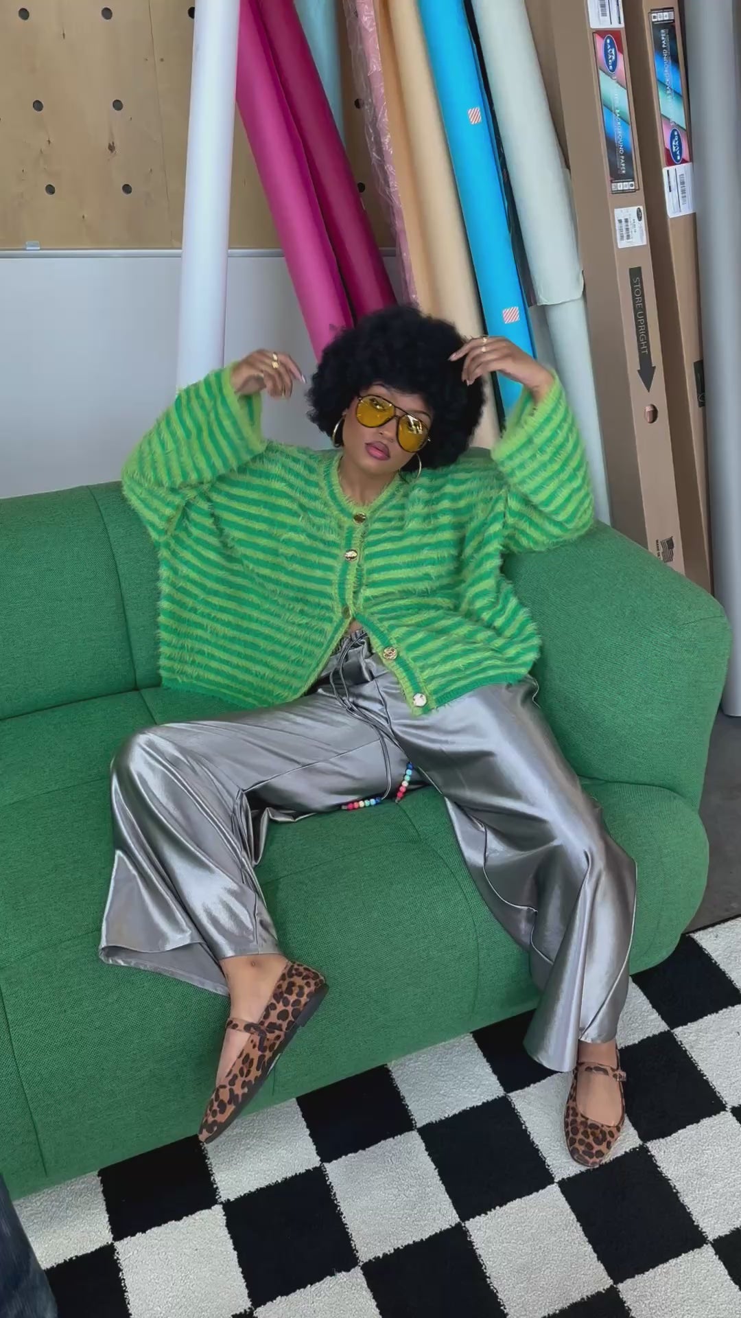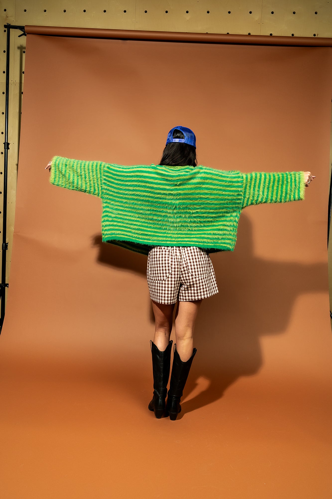 Double Trouble Striped Fuzzy Cardigan in Green *RESTOCKED*