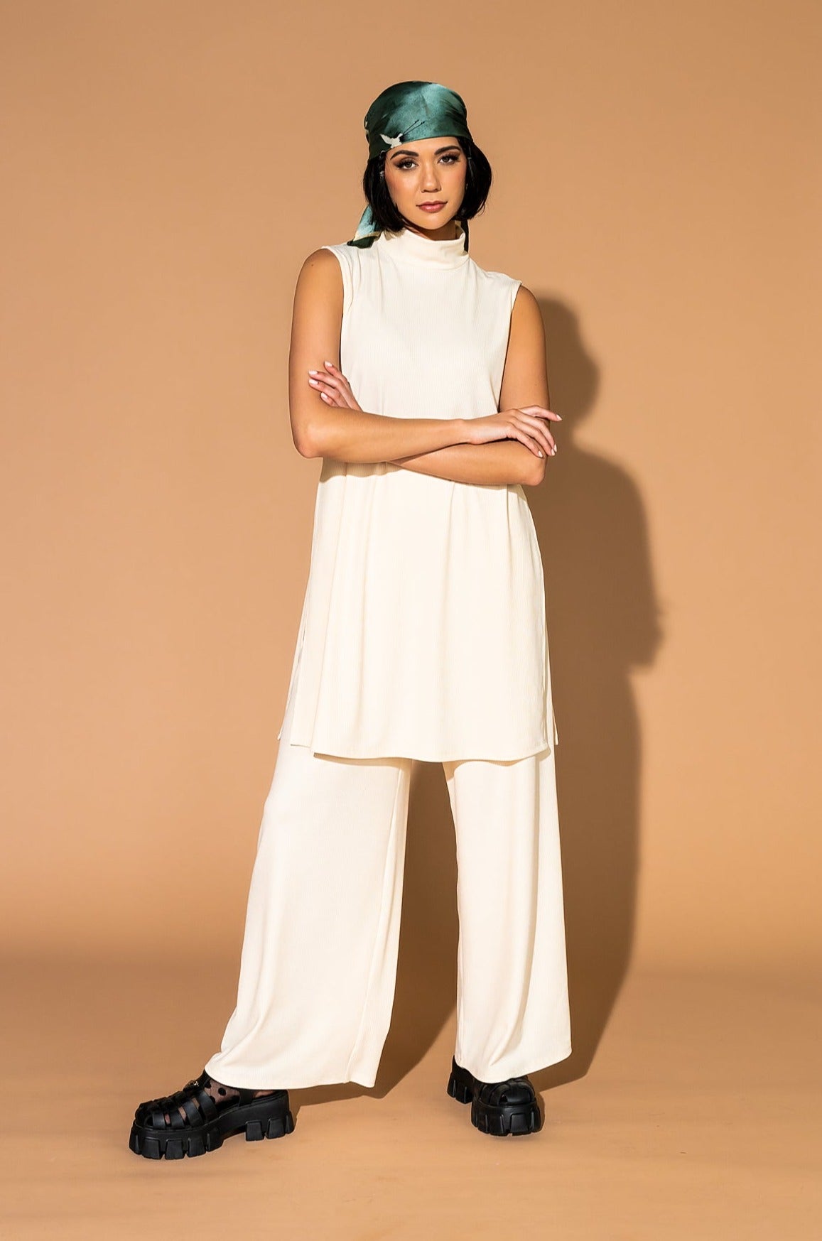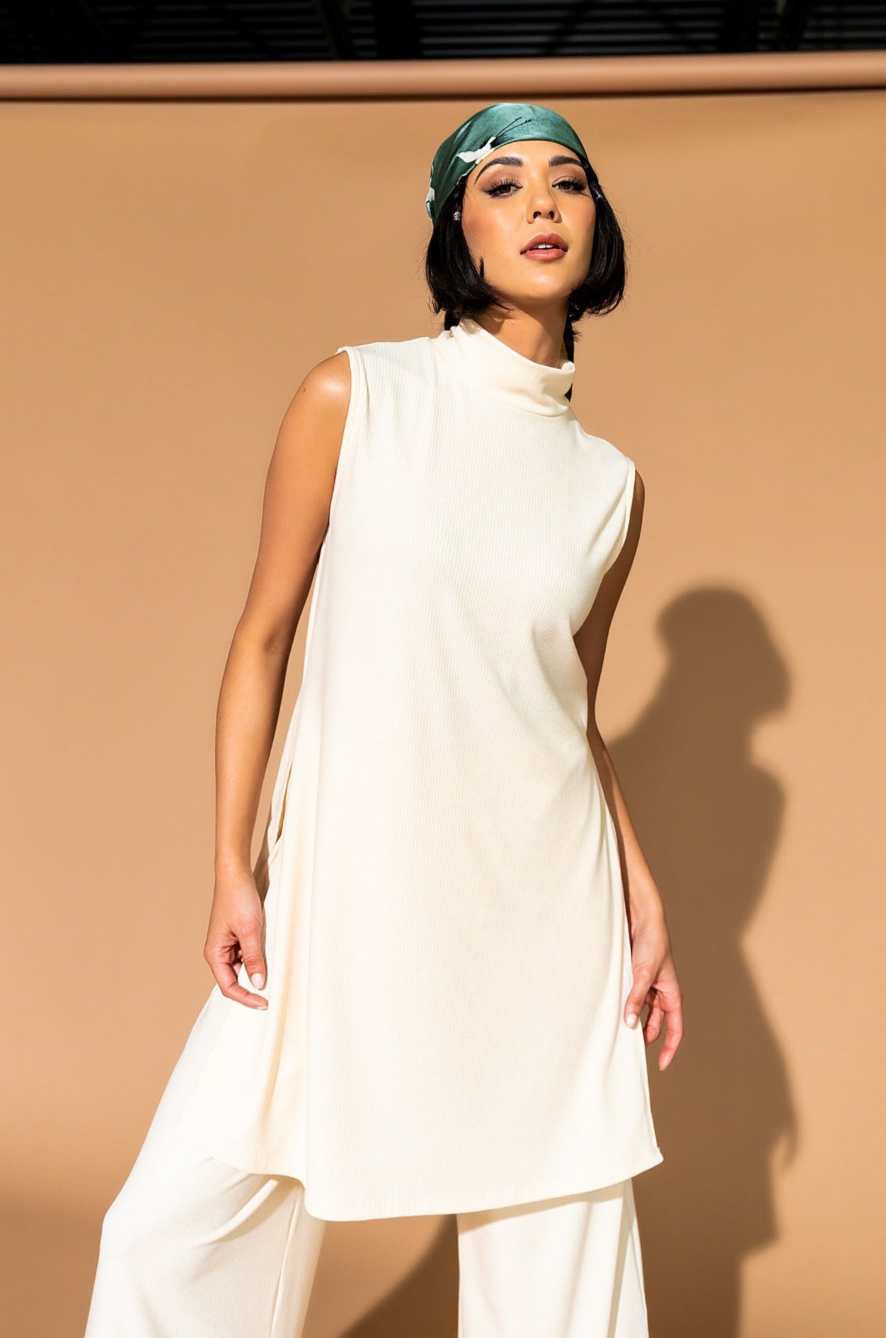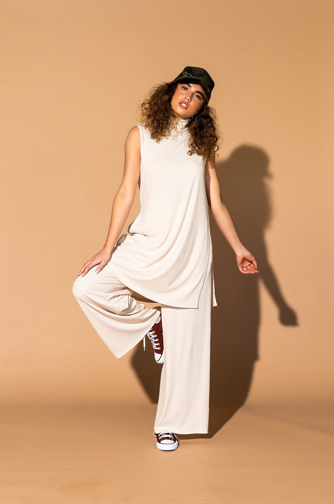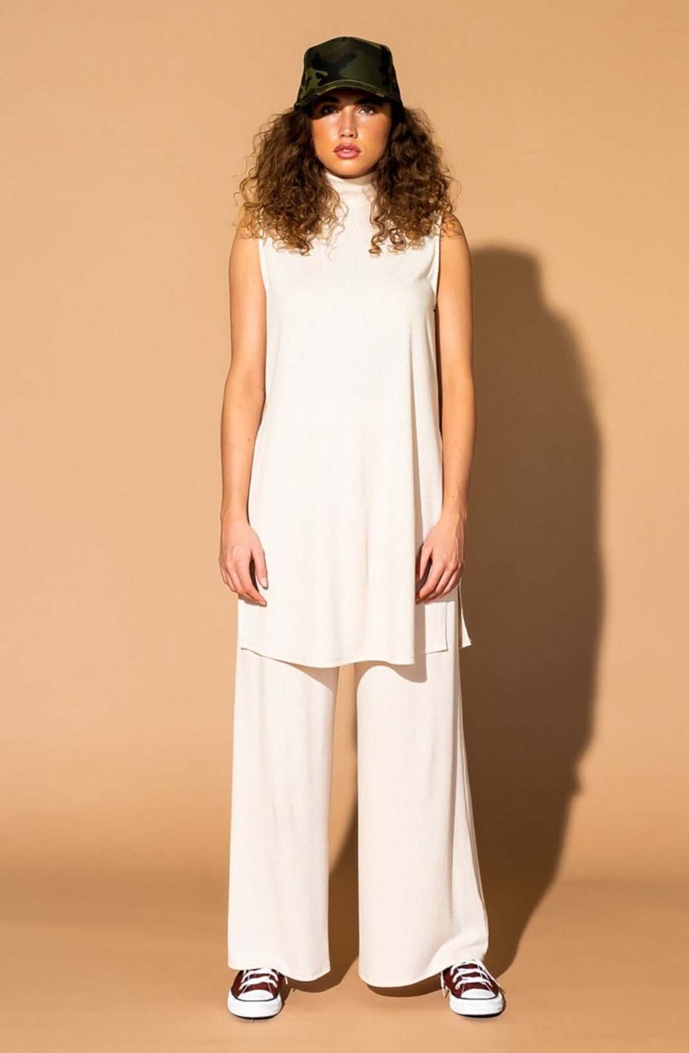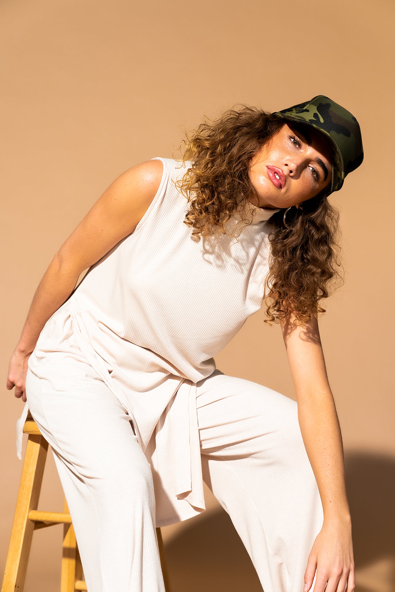 Gigi Sleeveless Ribbed Playsuit in Sand