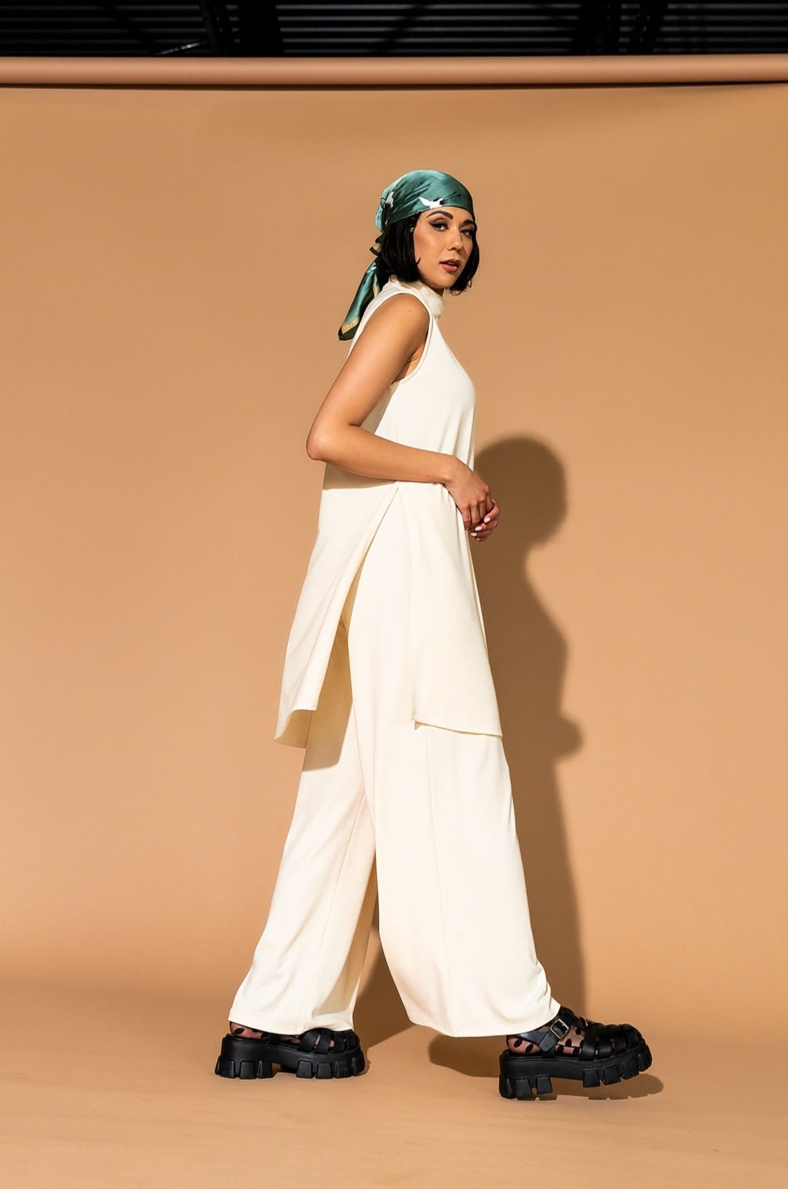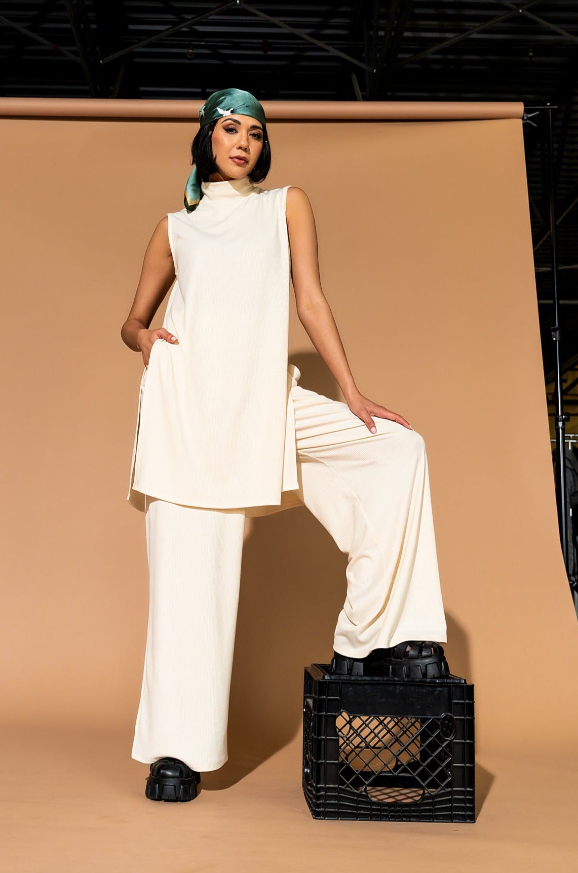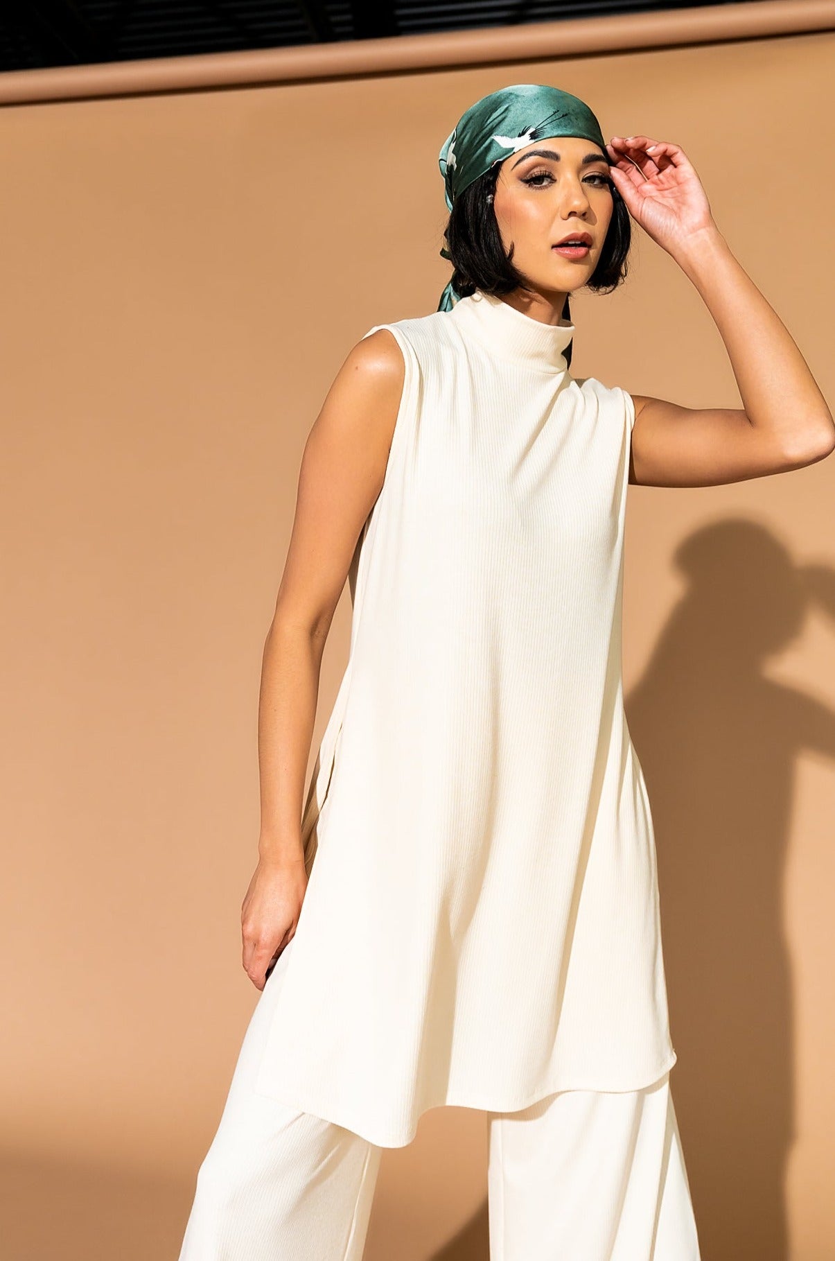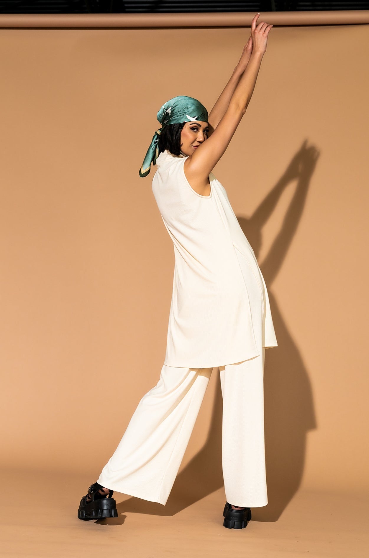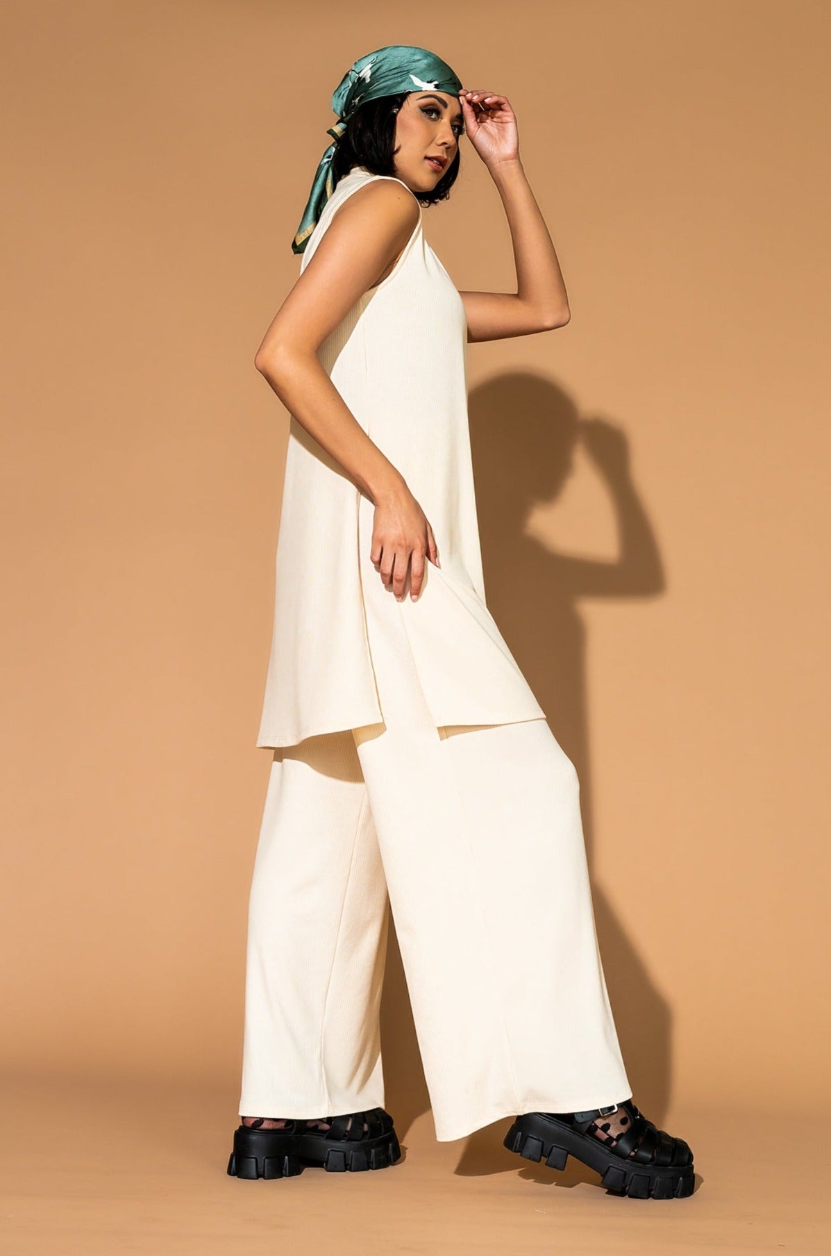 Gigi Sleeveless Ribbed Playsuit in Sand