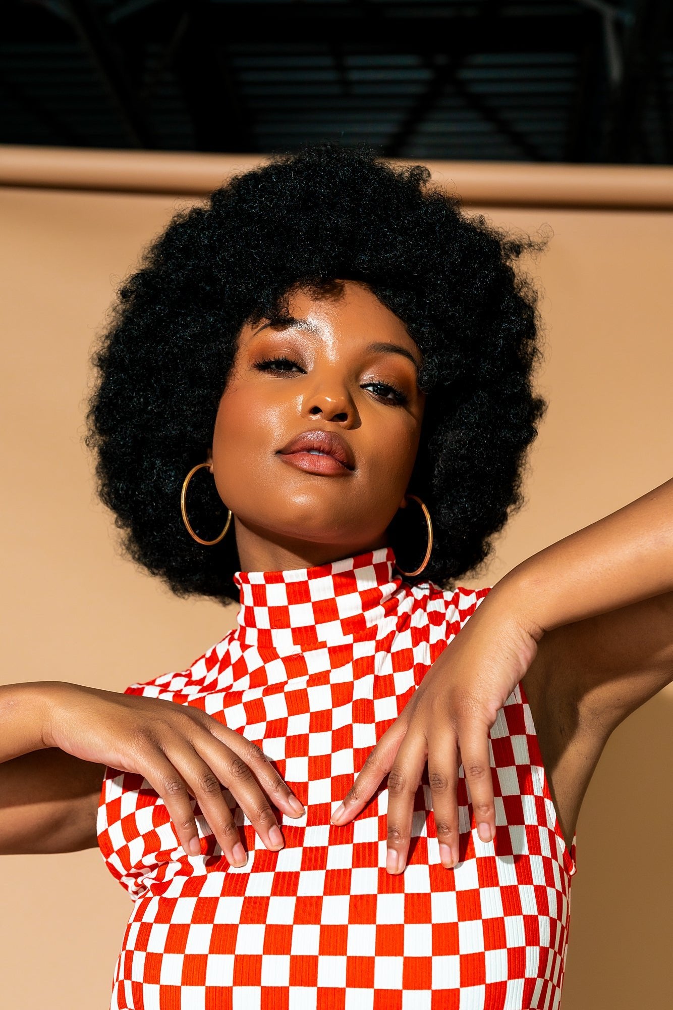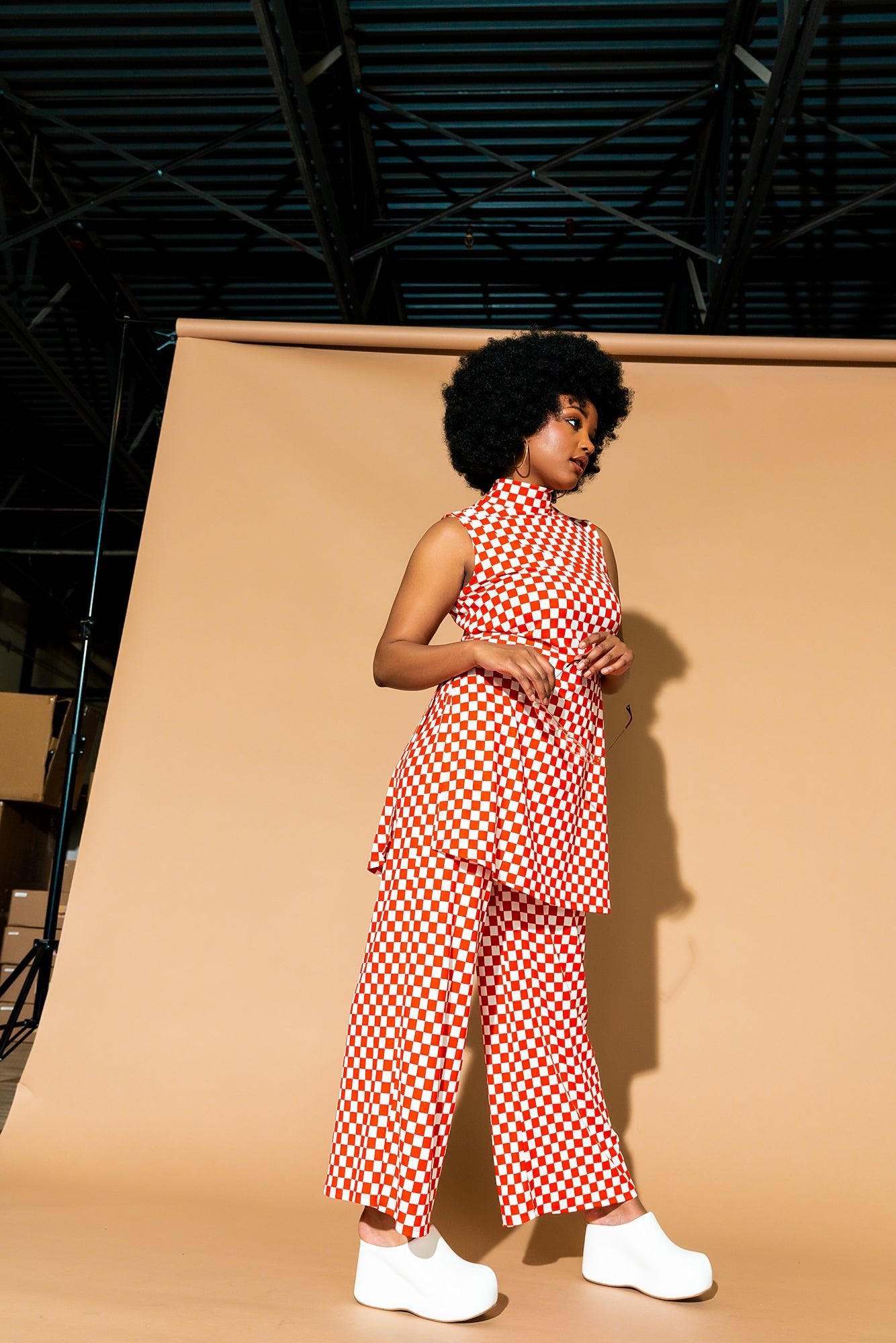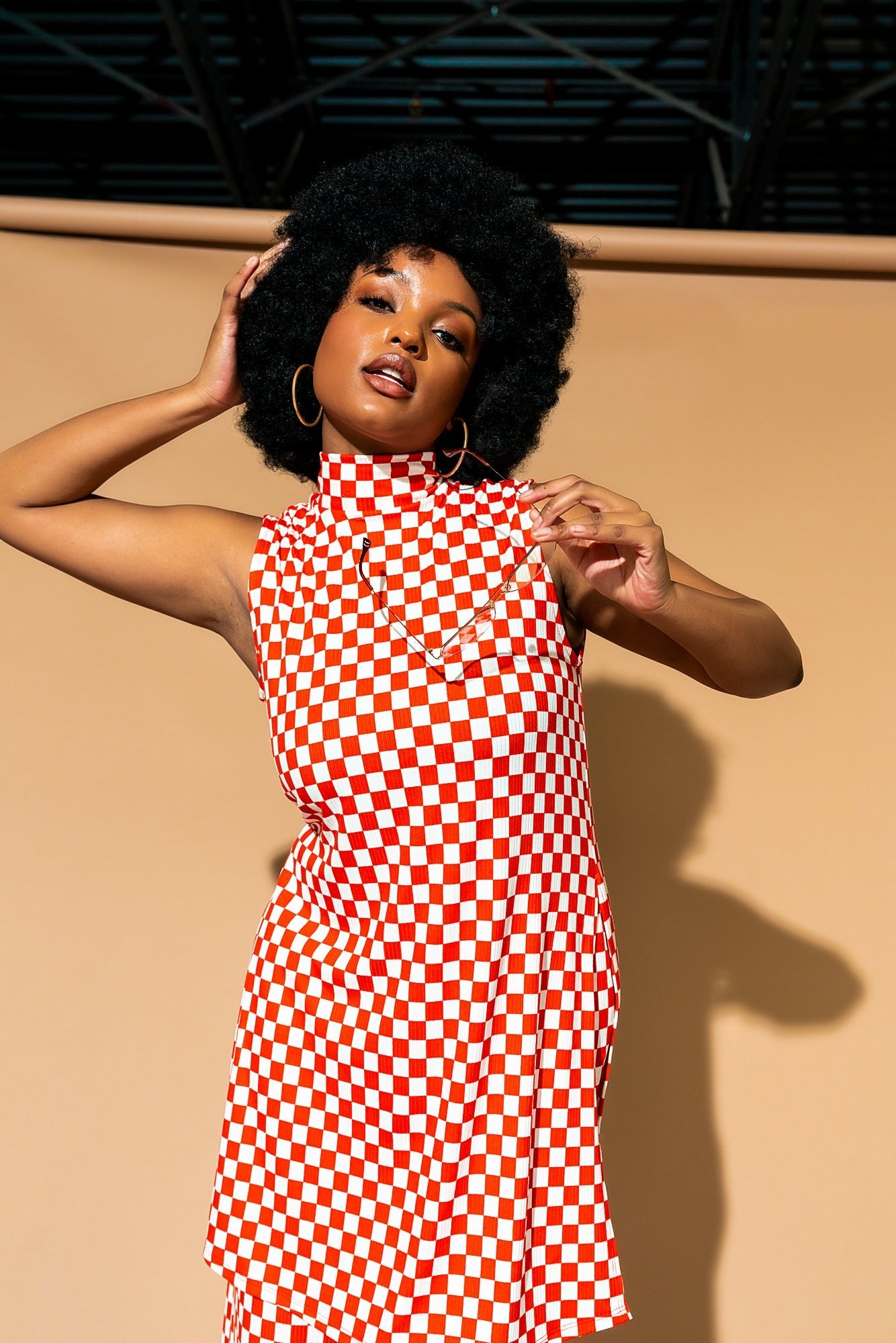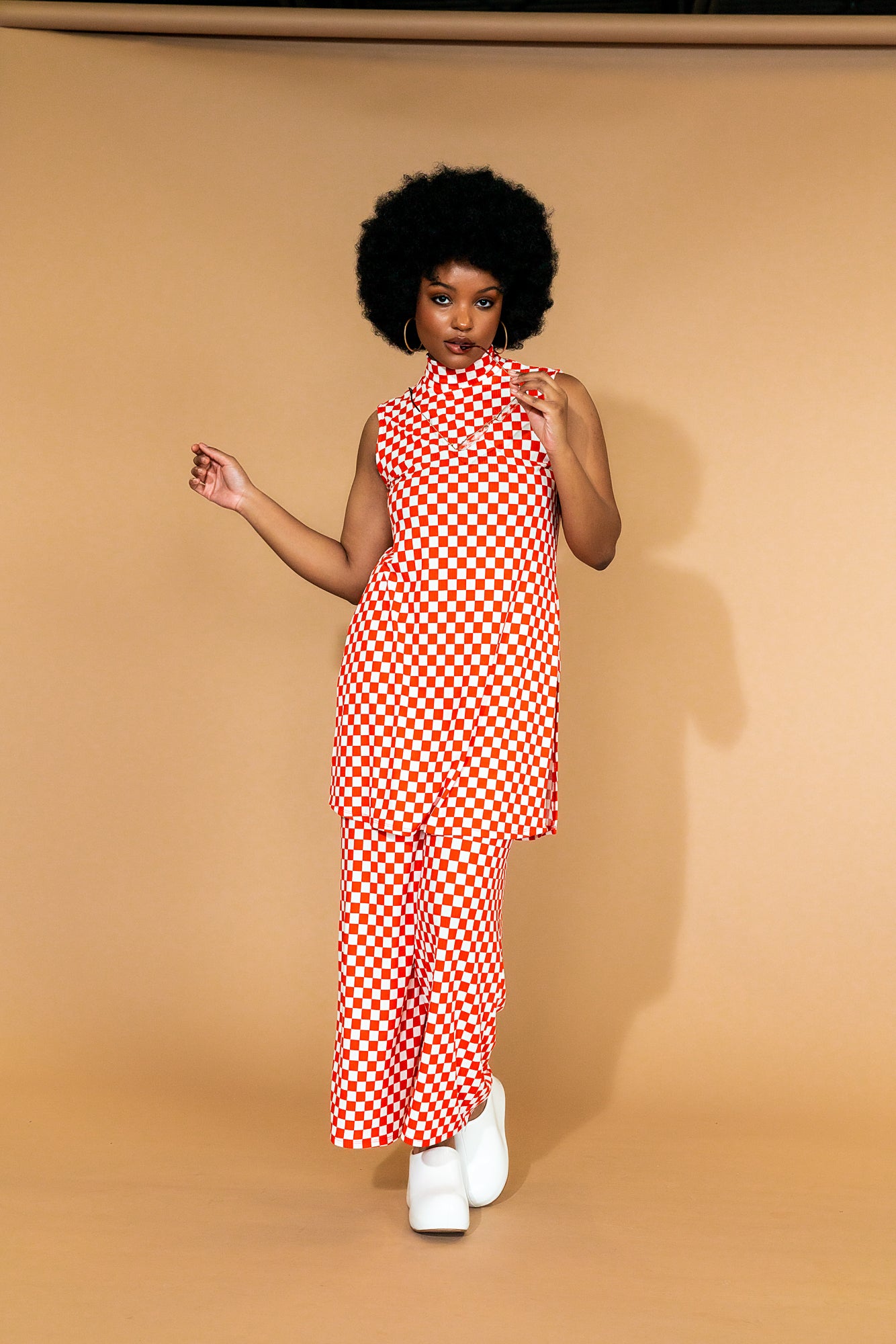 Gigi Sleeveless Ribbed Playsuit in Retro Red Check